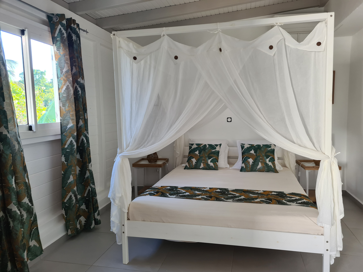 Venez découvrir notre hébergement de plein pied “La berceuse créole” à Sainte-Anne en Guadeloupe, idéal pour un séjour en famille ou entre amis. Nos bungalows sont conçus pour accueillir confortablement 4 personnes, dans une ambiance chaleureuse et conviviale.