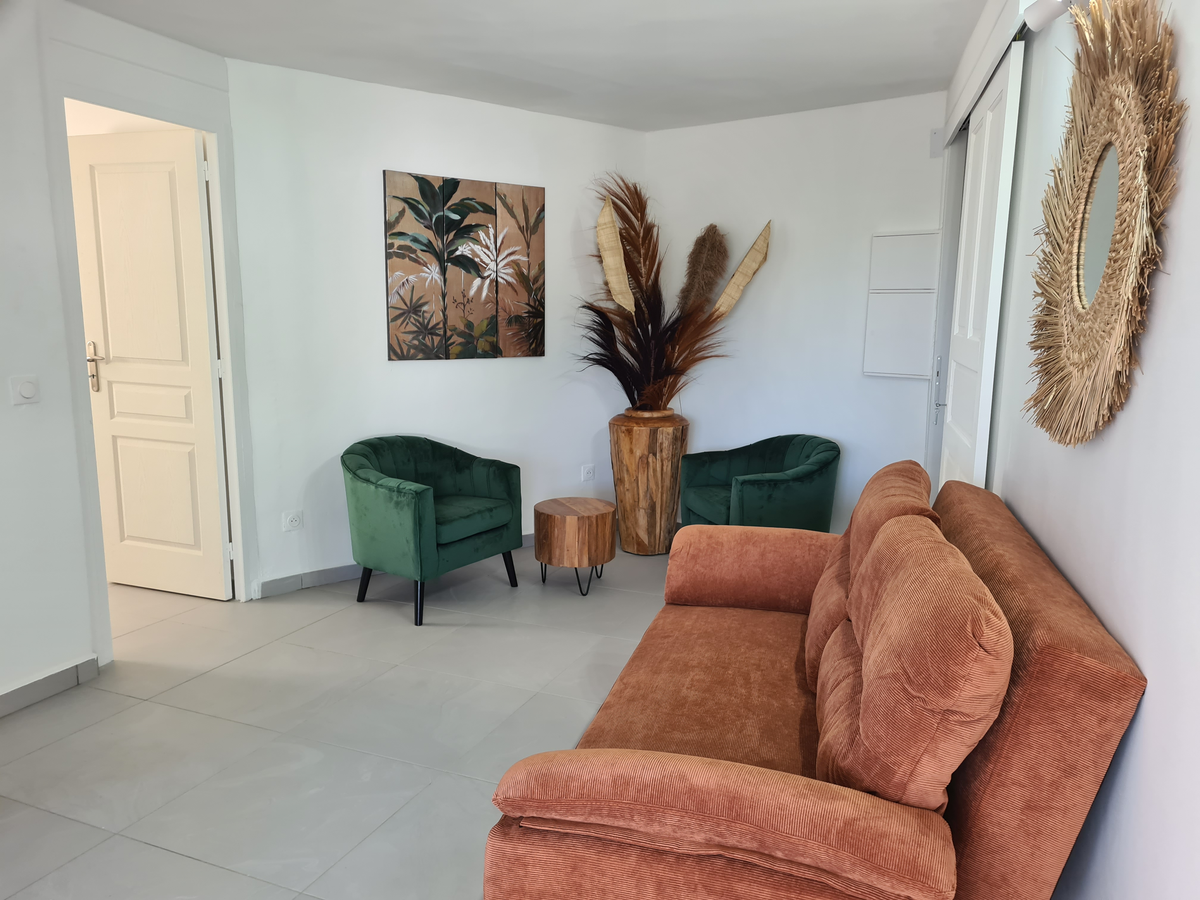 Vous apprécierez les deux chambres climatisées et la kitchenette, idéales pour préparer de bons petits plats en toute simplicité. Le salon est équipé d’une télévision et de canapés confortables, pour vous détendre en toute tranquillité. La salle de bain est équipée d’une douche et d’un WC.